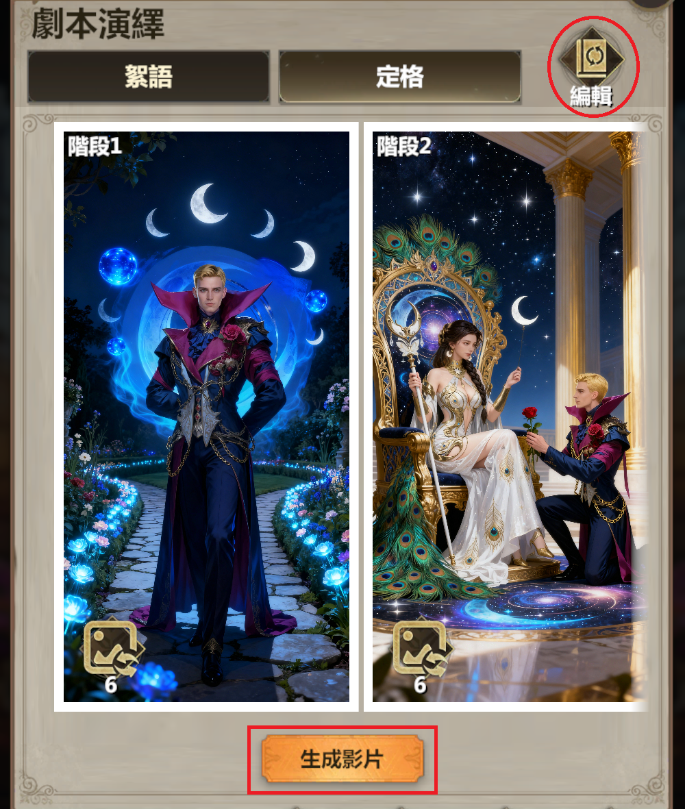 切換至定格頁面後,先進行劇本圖片生成,完成後即可進入影片生成流程。