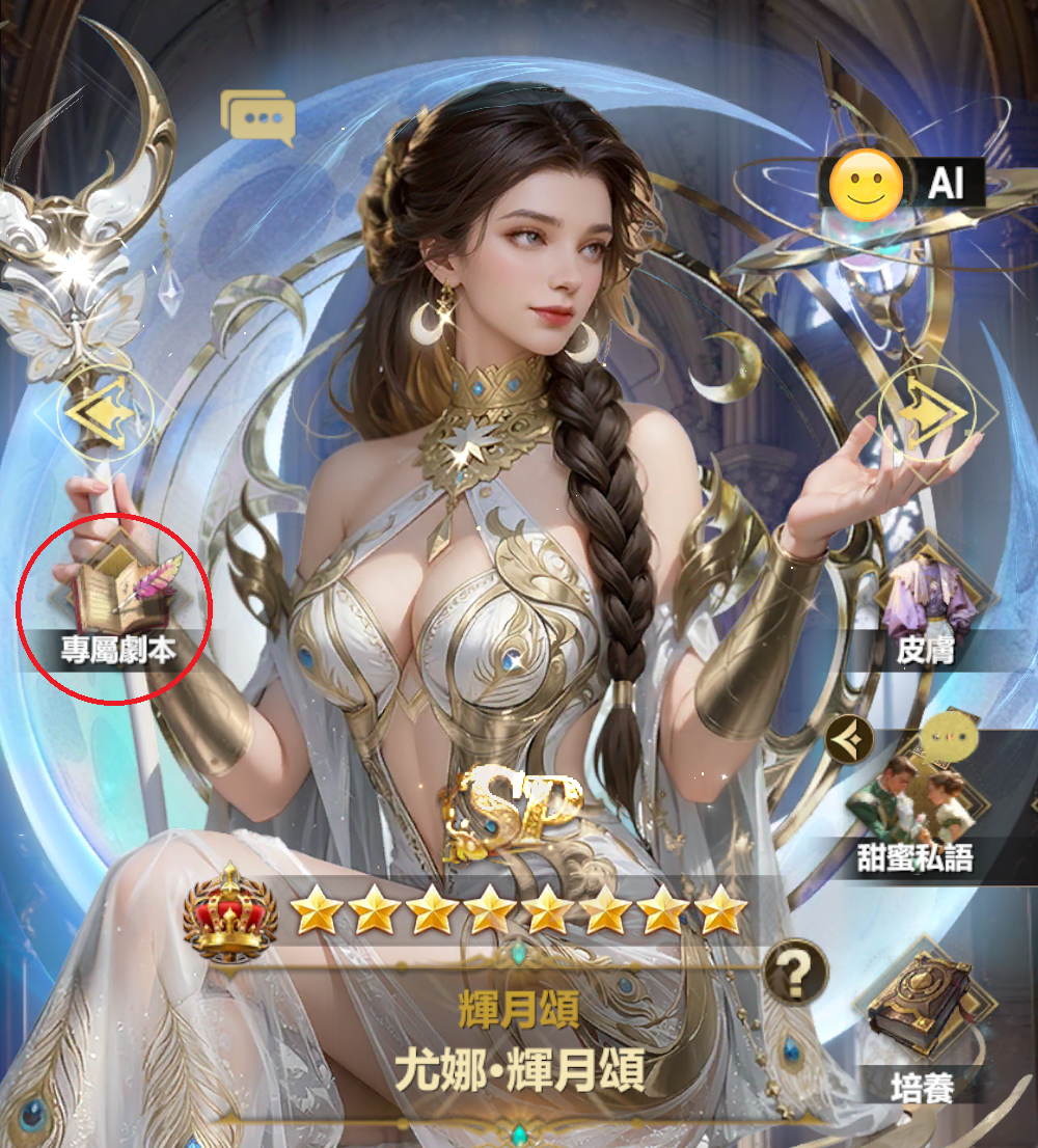 完成劇本任務通關後,在 SP 騎士界面點擊右上方的【AI圖標】